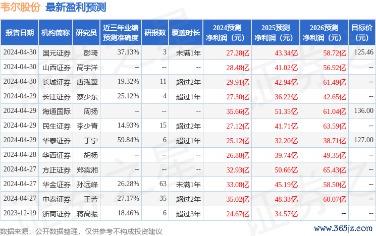 华鑫证券有限责任公司毛正,张璐近期对韦尔股份进行研究并发布了研究报告《公司事件点评报告:CIS“手机+车载”双驱动,24Q1营收利润大幅增长》,本报告对韦尔股份给出买入评级,当前股价为103.03元。