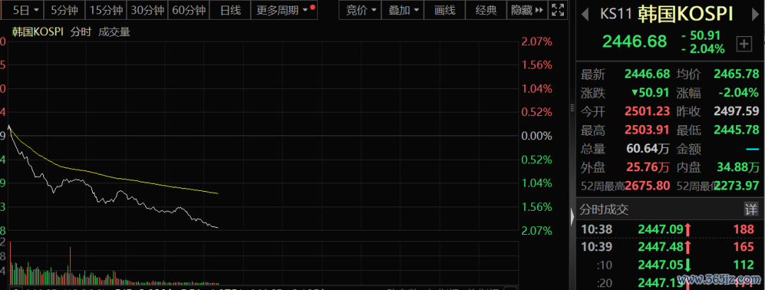 今天早盘,韩国股市彻底破位大跳水。韩国KOSPI指数大跌超过2%。