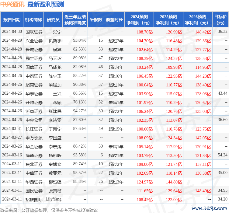 天风证券股份有限公司唐海清,王奕红近期对中兴通讯进行研究并发布了研究报告《24年开局稳健有韧性,AI算力+网络+芯片有望驱动持续成长》,本报告对中兴通讯给出买入评级,当前股价为28.74元。